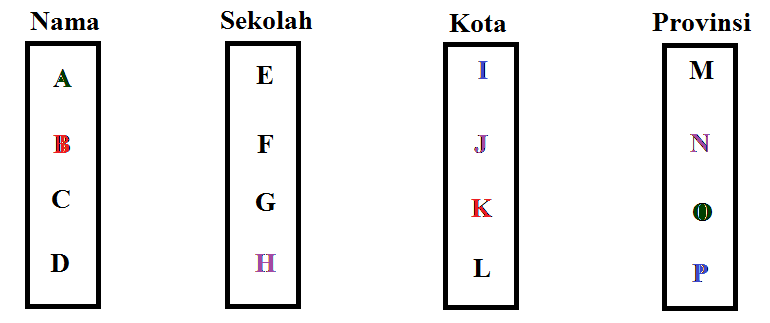 A, B, C, dan D. Semula data mereka disimpan dalam database yang meliputi data